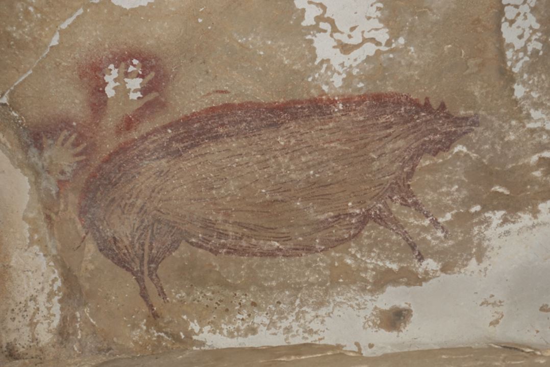 De oudst bekende grottekening is gevonden in de buurt van Maros op het Indonesische eiland Sulawesi. Daar werd in 2014 in een grot een tekening van een hertzwijn gevonden, die op 35.400 jaar oud werd geschat. In deze grotten zijn ook talrijke handstencils aangetroffen, waarvan de oudste minstens 39.900 jaar geleden werd aangebracht. Eind 2019 zijn er tekeningen gevonden van minstens 43.900 jaar oud. Dit waren afbeeldingen van vier dwergbuffels, anoa’s, twee wilde varkens met daarbij acht kleine mensen, sommige met speren of touwen. De varkens zijn 123 en 84 centimeter breed, de buffels iets kleiner, en de mensjes zijn vier tot acht centimeter hoog. Tevens zijn er theriantropische figuren afgebeeld. In 2020/2021 is een tekening van een Celebeswrattenzwijn gevonden, die minstens 45.500 jaar oud is. De tekening van het zwijn met zijn karakteristieke gezichtswratten en zijn korte poten meet 136×54 cm.