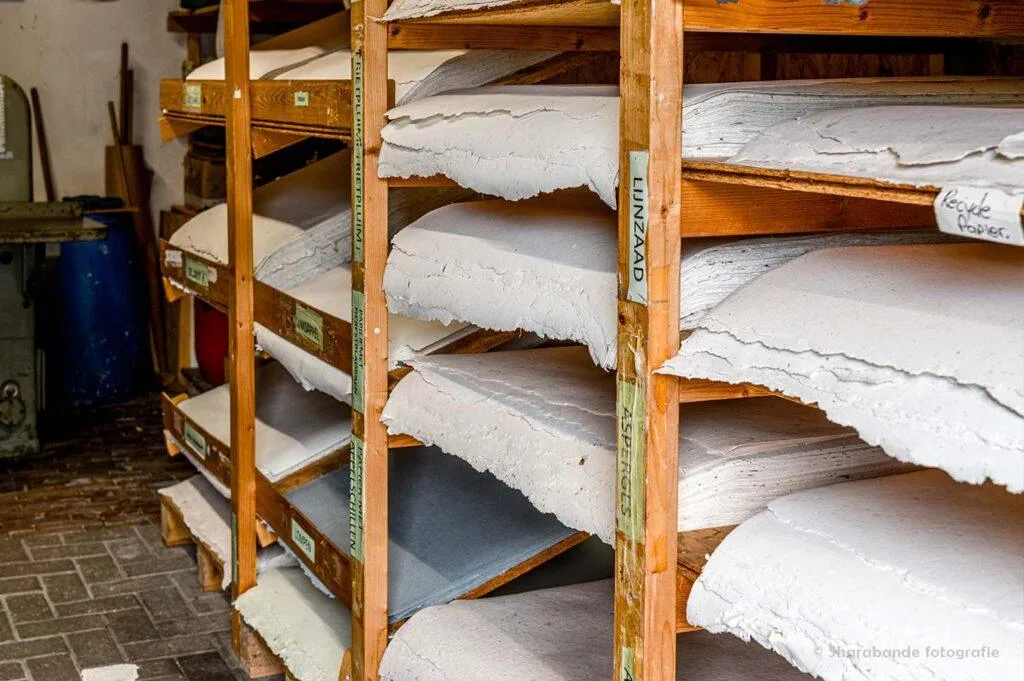 Het water ging door de mat heen en de papierpulp bleef er in een laag op liggen.