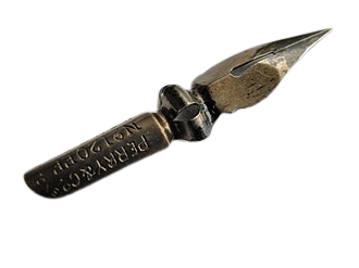 de inkt beter zitten), waarna de pen in een inktpot werd gedoopt. In de pen zit een gaatje dat als inktreservoir dient.