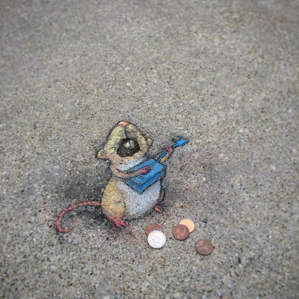 Er bestaan vanaf het eind van de 19e eeuw ook straatkunstenaars die het voorbijkomend publiek een kleine vergoeding vragen voor hun prestatie. Helaas wil de stoepversiering niet lang standhouden wanneer er een regenbui overheen gaat, wat leidt tot een vormeloze en ontsierende kleurvlek. Voor de leerkrachten in kwestie wil het stoepkrijten in de zomerdagen daarom nog weleens tot ergernis leiden. Aan de andere kant is de krijttekening een van de eenvoudigst te verwijderen vormen van graffiti.