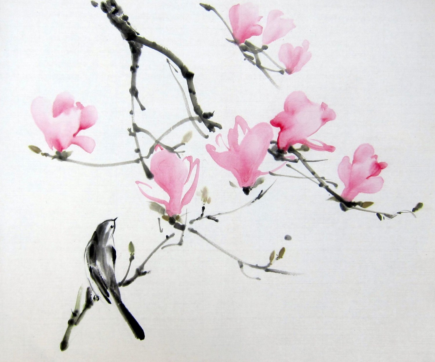 De schildertechniek kende haar eerste grote bloeiperiode tijdens de Song-dynastie (960–1279). Het werd een onderdeel van het Chinees examenstelsel en men rekende het tot een van de vier kunsten waar de literati in zich bekwaamden, naast het bespelen van de guqin, de vaardigheid in het bordspel go en kalligrafie. De techniek werd onder andere toegepast voor shan shui-landschappen en bamboeschilderingen.